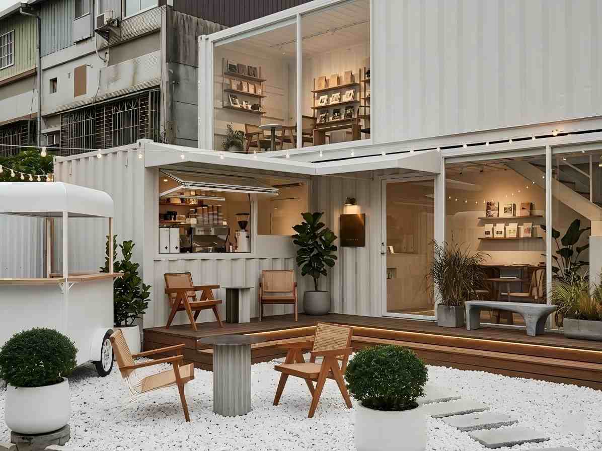 In recent years, container architecture has evolved from simple temporary structures into highly creative commercial spaces. One of the most eye-catching applications is the container coffee shop—especially when placed in a peaceful courtyard setting. Combining minimalist aesthetics with modern functionality, a white container café creates a unique experience that attracts customers and enhances brand identity